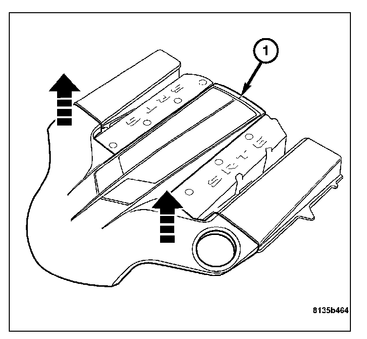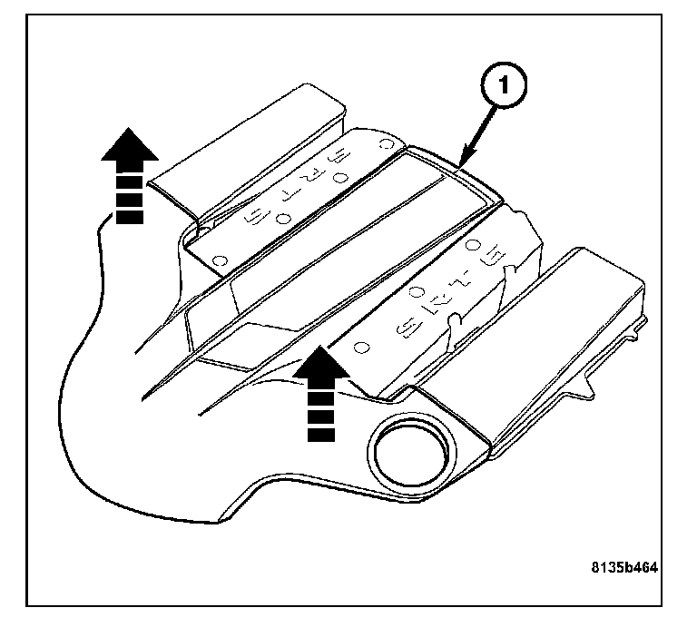 8. Install the engine cover (1). Align the engine cover retaining clips to the rubber mounts, and push down firmly to connect engine cover to rubber mounts.