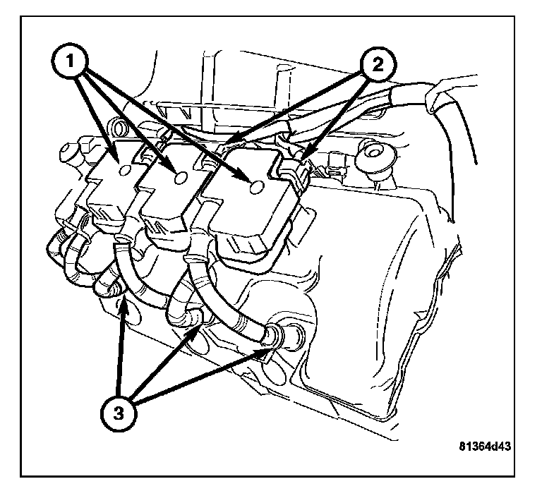 3. Connect the ignition coil wire harness connector (1) to the coil pack.