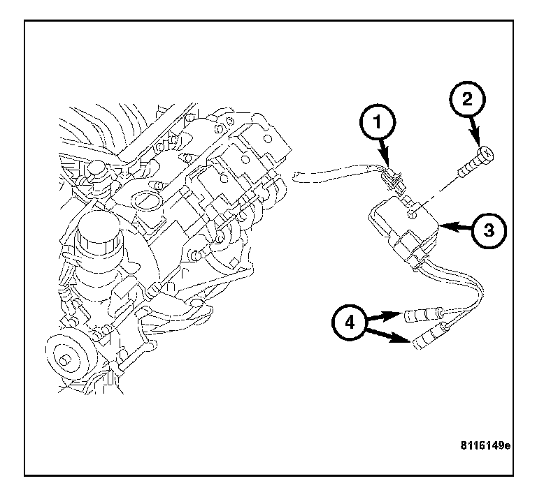 2. Install the ignition coil retaining bolt (2). Tighten the bolt to 8 N.m (71 in. lbs.).