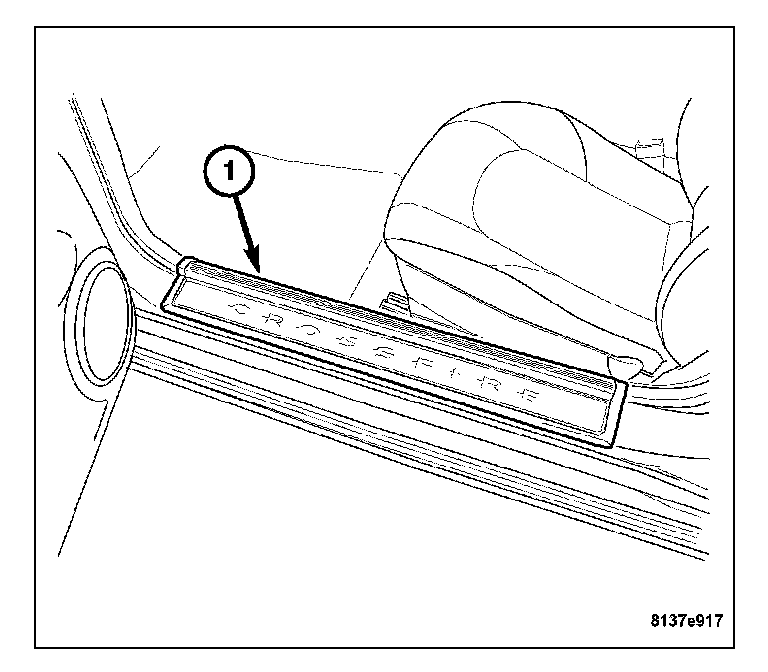 2. Remove the door sill plate (1).