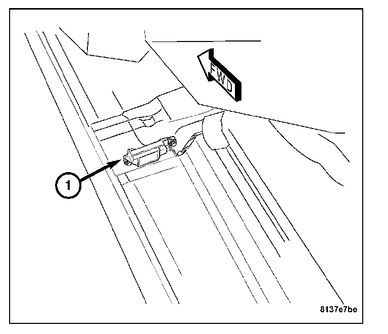 2. Position the side impact sensor (1) on the body cross brace.