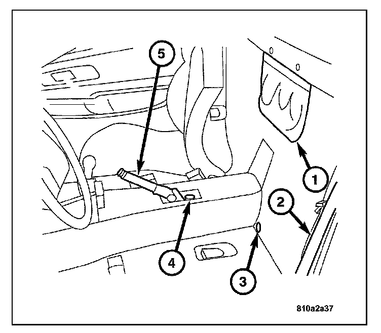 7. Remove the seat belt bolt (2) holding the seat belt to the seat.