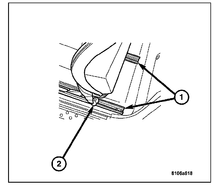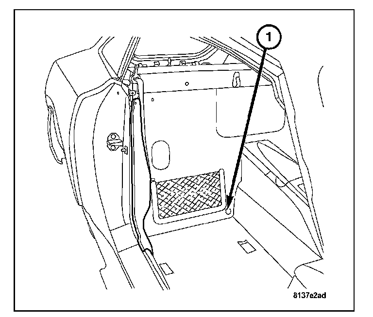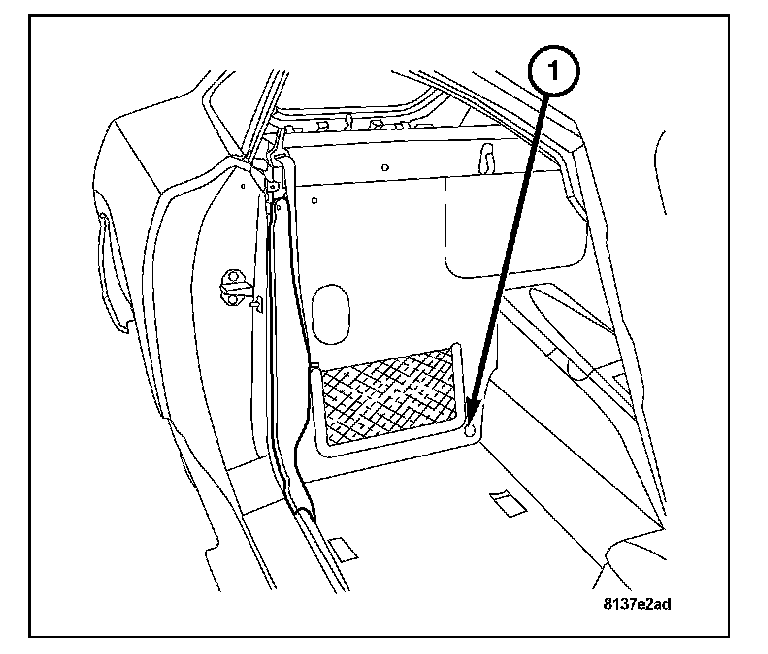 12. Remove the carpet retainer button (1) at the passenger compartment rear wall.