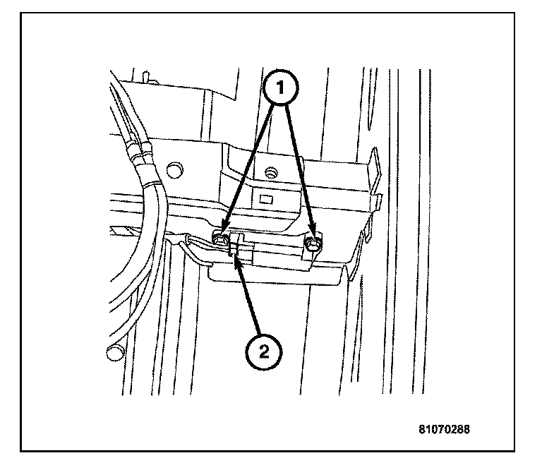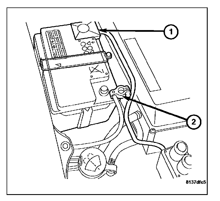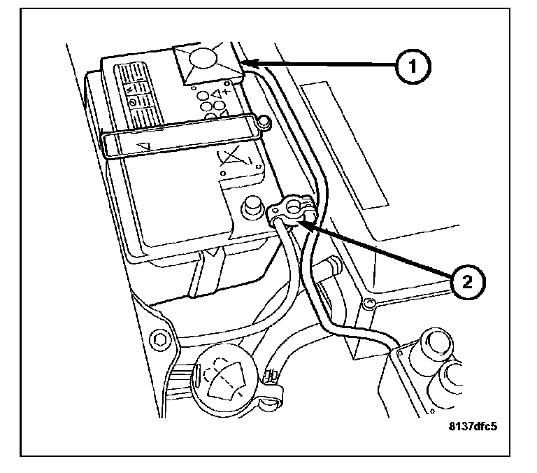 1. Verify the negative battery cable (2) is disconnected before proceeding. Wait two minutes for the system capacitor to discharge before further service.