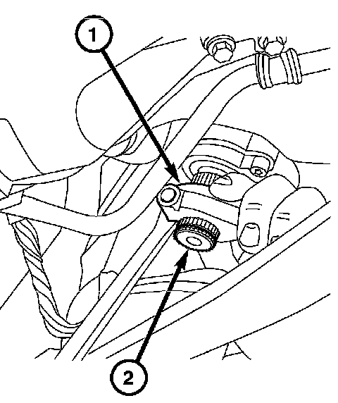 2. Install the pitman arm (1) to the pitman arm shaft (2).