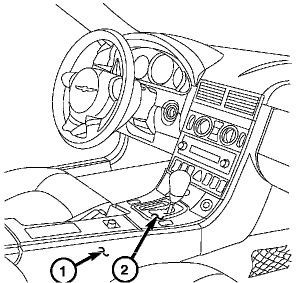 In vehicles equipped with an automatic transmission, the Shift Lever Assembly (2) is located at the front of the center console (1).