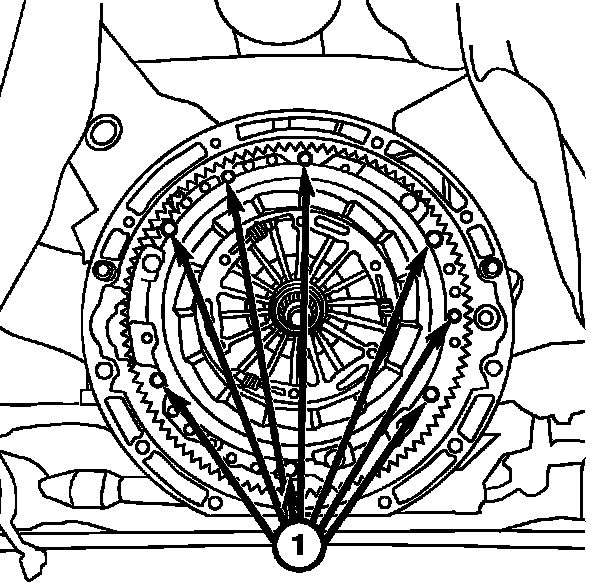 6. Tighten the clutch cover bolts (1) until all bolts are fully seated. Tighten to 25 Nm (18 ft. lbs.).