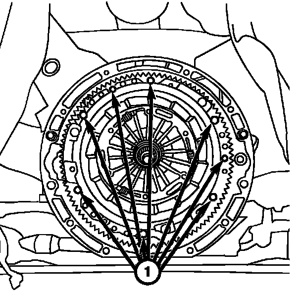 2. Loosen the bolts (1) on the clutch cover.
