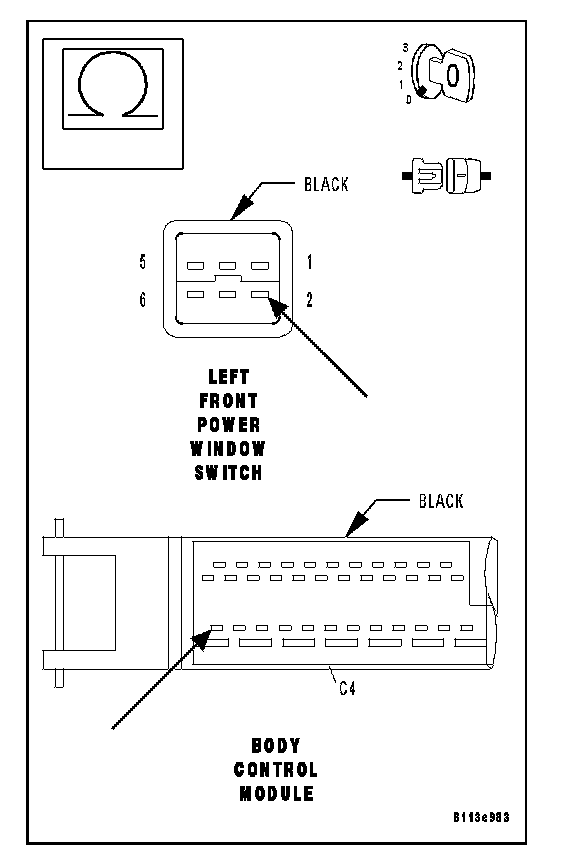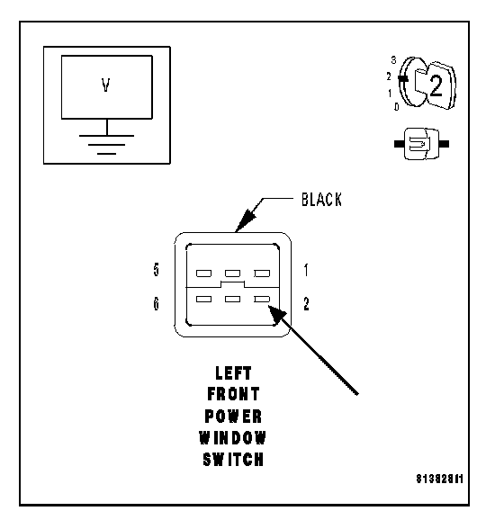Measure the voltage of the Left Power Window Switch Sense circuit at the Left Front Power Window Switch harness connector.