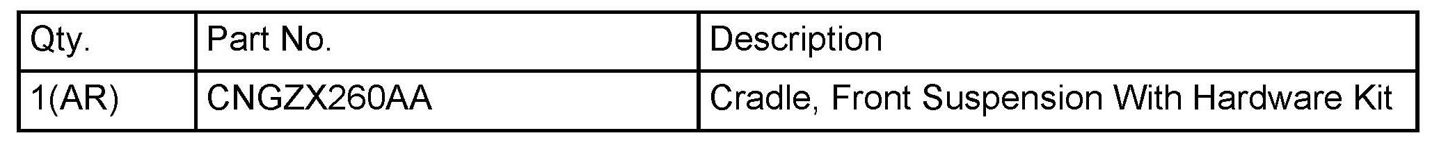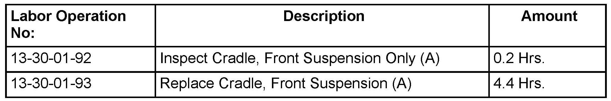 3. Remove and Replace Cradle, Front Suspension. Refer to the detailed removal/installation procedures available in DealerCONNECT > TechCONNECT under: Service Info > 13 - Frames and Bumpers > Frame > Engine Cradle Crossmember> Removal/Installation> Front Crossmember.