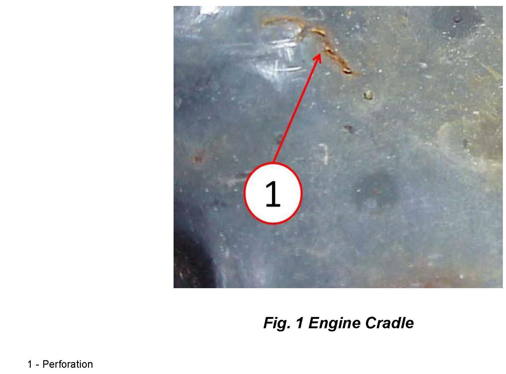 2. Inspect the engine cradle for perforation as shown in (Fig. 1). Was there any perforation found?