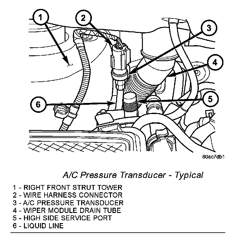 NOTE: It is not necessary to discharge the refrigerant system to replace the A/C pressure transducer.