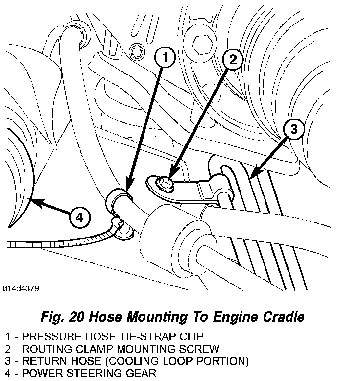 3. Install tie-strap clip securing pressure hose to engine cradle (Fig. 20).