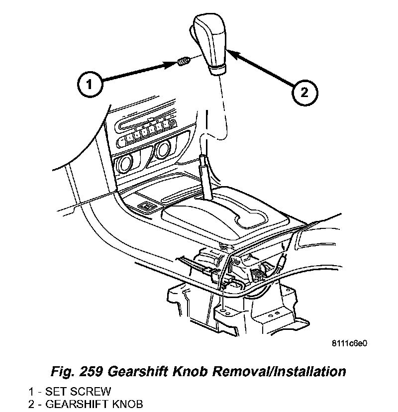 5. From inside vehicle, remove gearshift knob (Fig. 259).