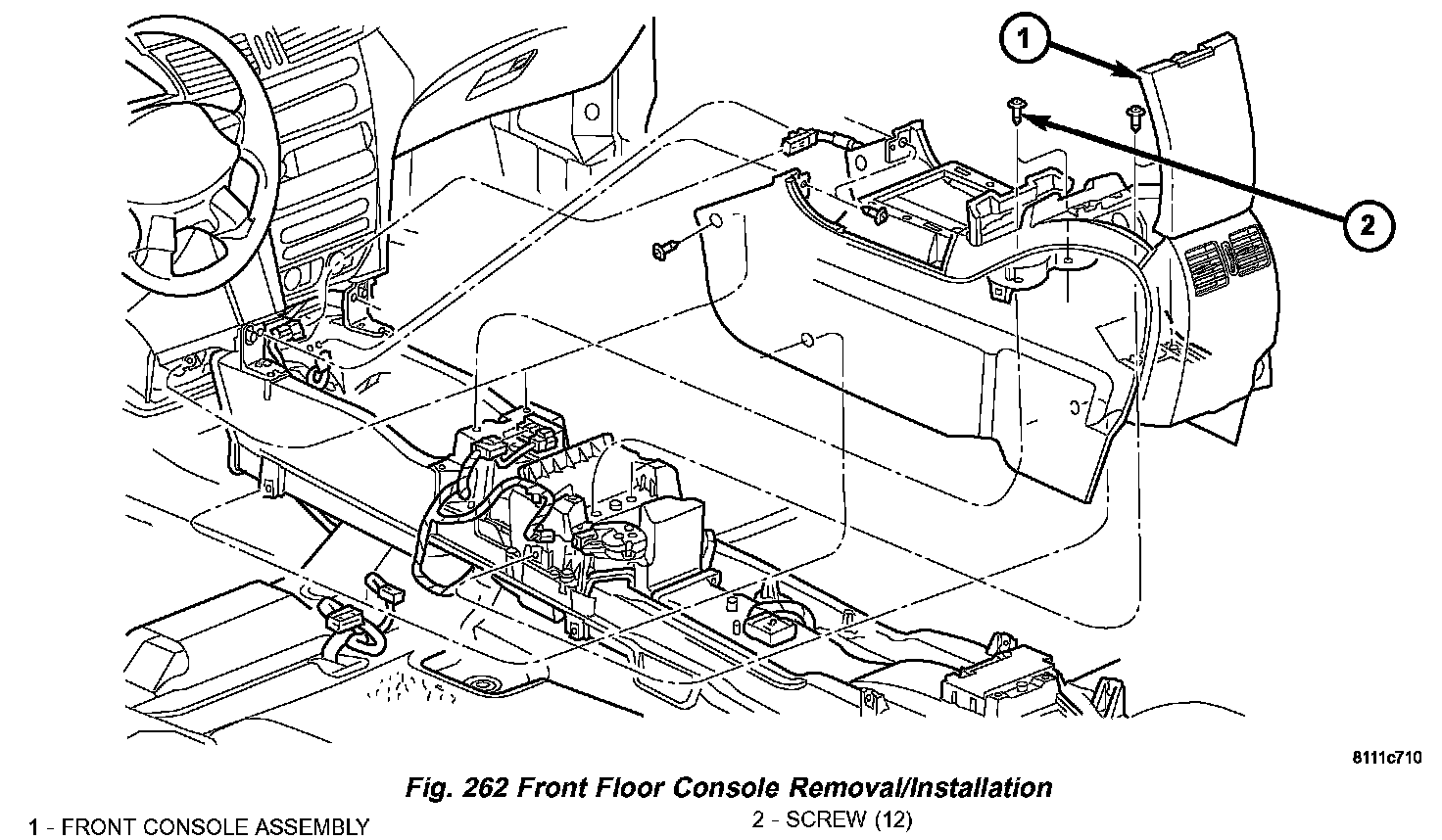 8. Remove front center console assembly (Fig. 262).