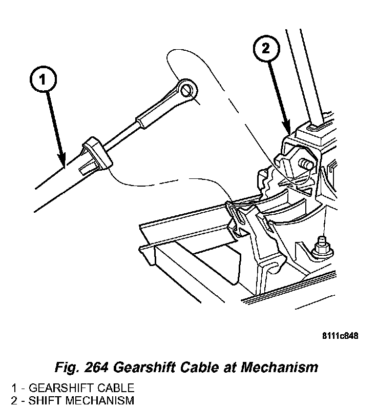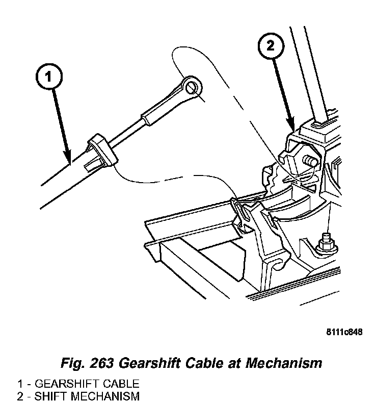 9. Disconnect gearshift cable from gearshift lever pin and mechanism base (Fig. 263).