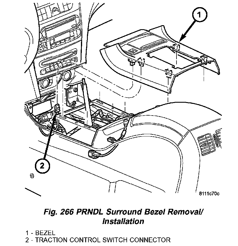 4. Install PRNDL surround bezel (Fig. 266).