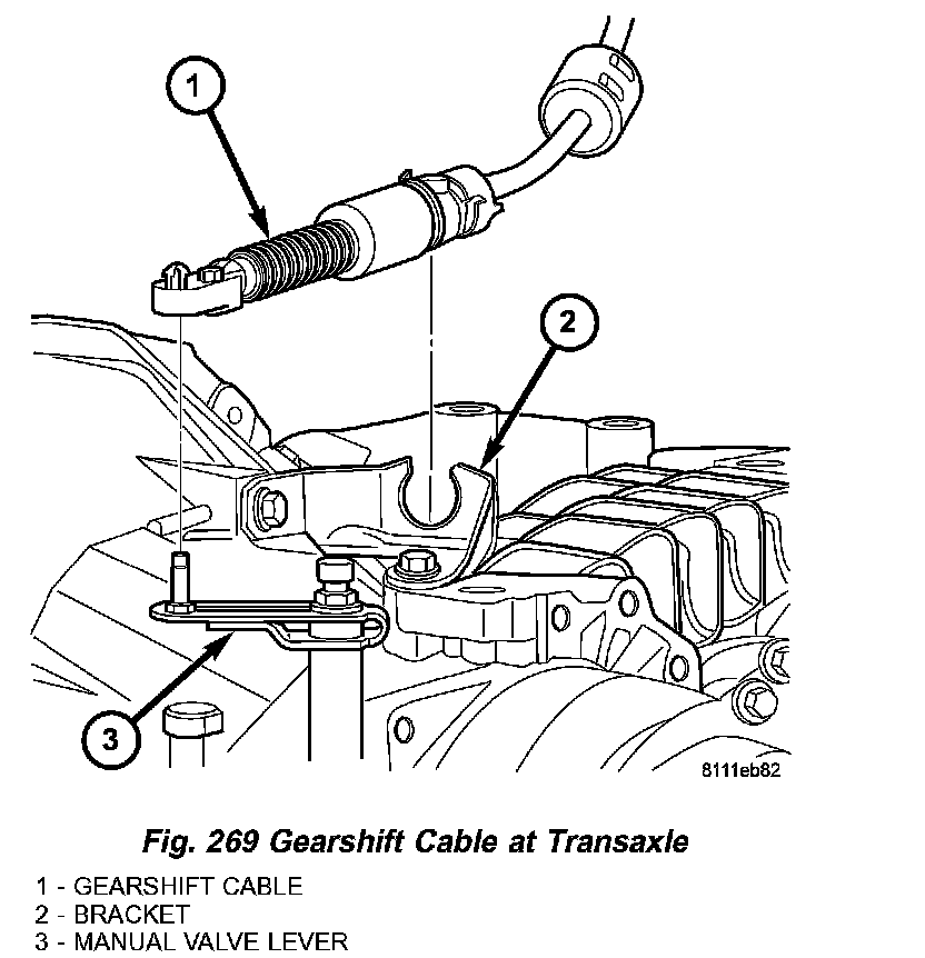 8. Install cable to transaxle manual valve lever (Fig. 269).
