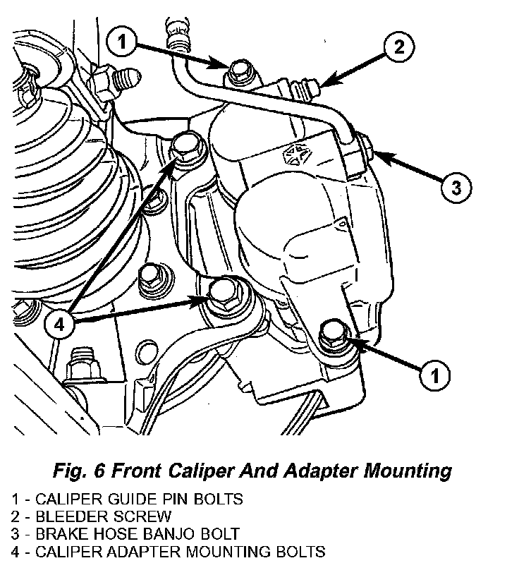 7) Remove two brake caliper guide pin bolts (Fig. 6).