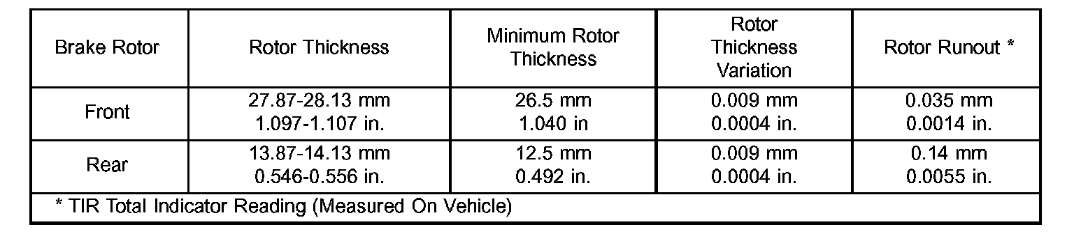 BRAKE ROTORNOTE: When refacing a rotor, the required TIR (Total Indicator Reading) and thickness variation limits MUST BE MAINTAINED. Extreme care in the operation of rotor turning (machining) equipment is required.