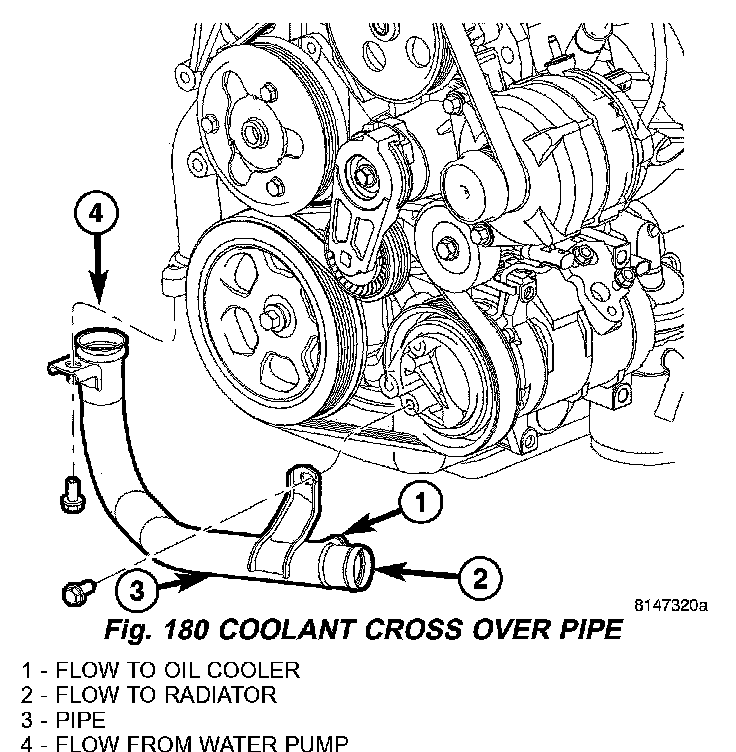20) Remove the coolant cross over pipe fasteners and pipe (Fig. 176).