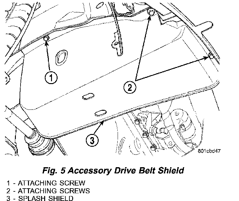 4) Install drive belt shield (Fig. 5) and lower vehicle.