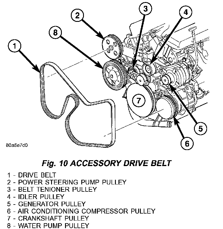 1) Route and position the drive belt onto all pulleys, except for the crankshaft (Fig. 10).