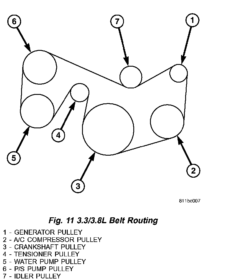2) Rotate belt tensioner counterclockwise until belt can be installed onto the crankshaft pulley (Fig. 6). Slowly release belt tensioner.