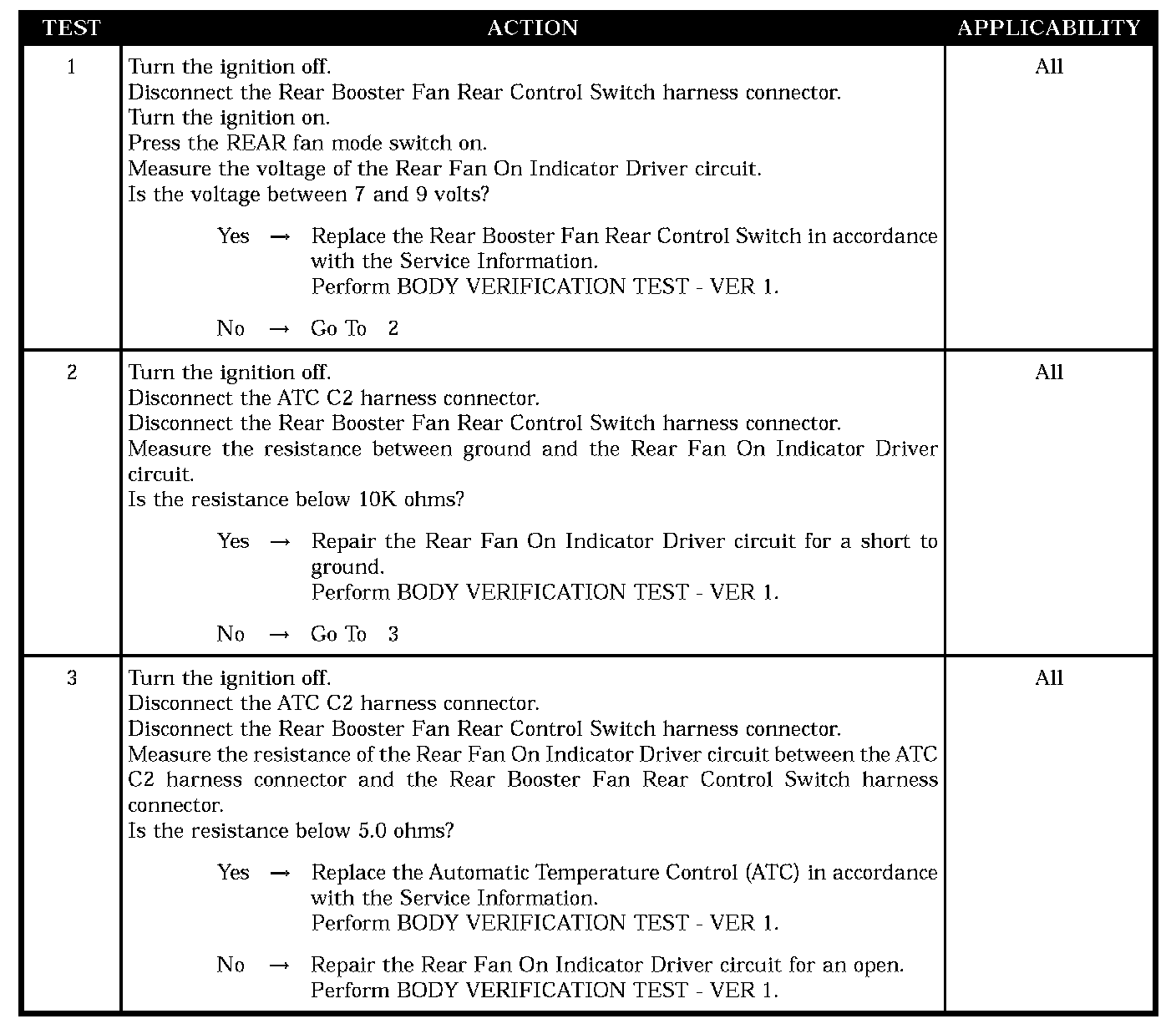 Rear Booster Fan Rear Control Switch on Indicator Inoperative - ATC