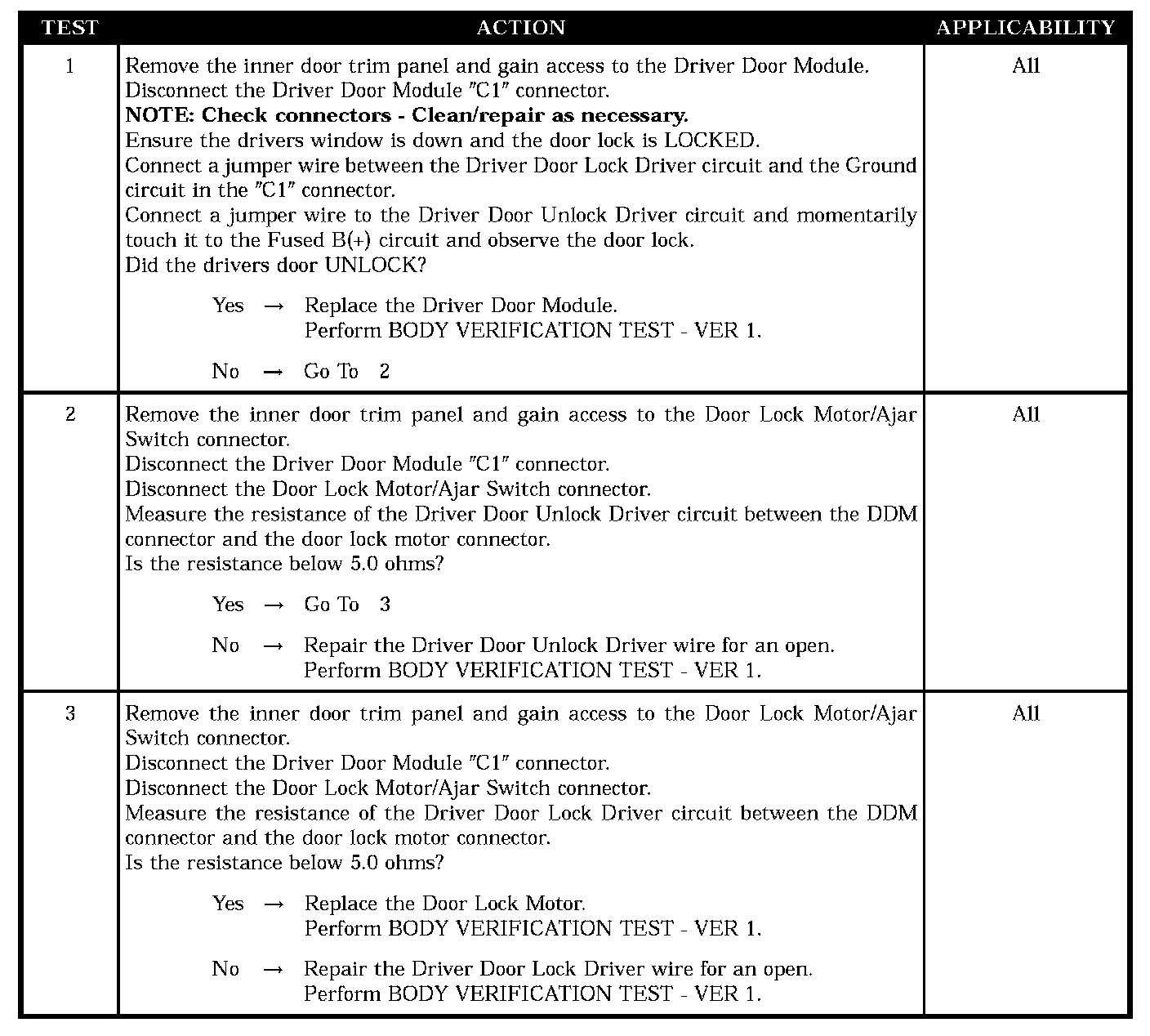 DRIVER DOOR FAILS TO LOCK AND UNLOCK