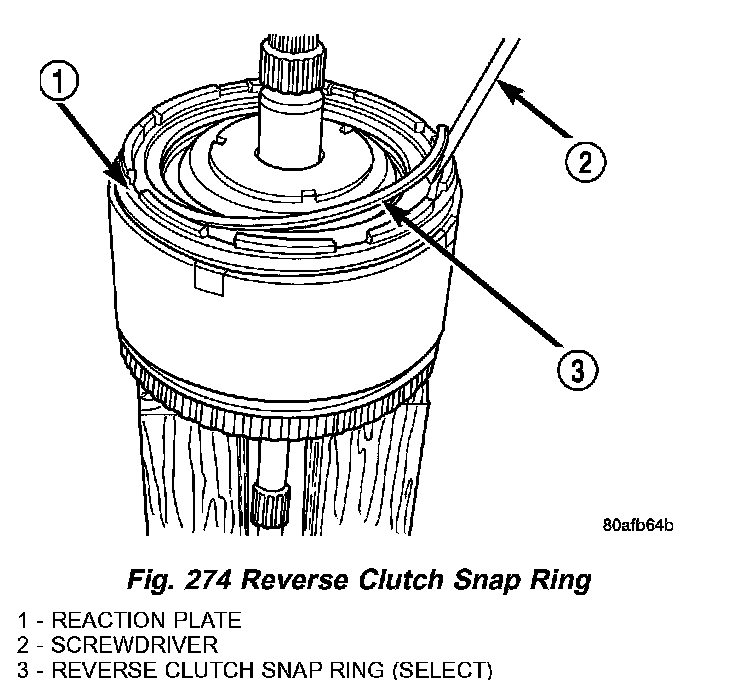 2. Tap down reverse clutch reaction plate to release pressure from snap ring (Fig. 273).