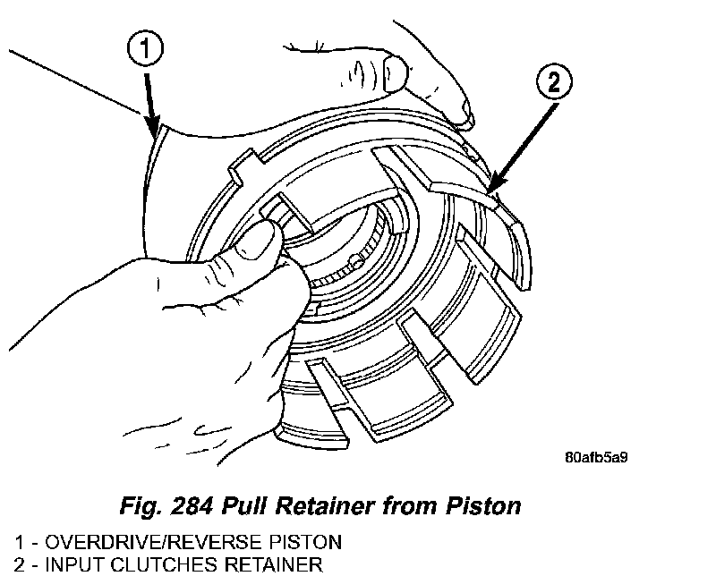 17. Separate clutch retainer from OD/Reverse piston (Fig. 284).