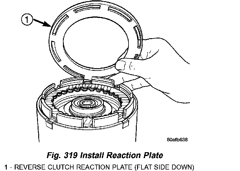 29. Install reverse clutch reaction plate with the flat side down towards reverse clutch (Fig. 319).