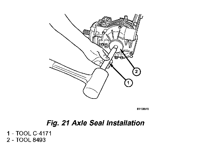 ASSEMBLY1. Install axle seals using tools C4171 and 8493 (Fig. 21).