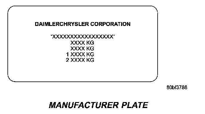 The Manufacturer Plate is located in the engine compartment on the passenger side rear corner of the hood. The plate contains five lines of information: