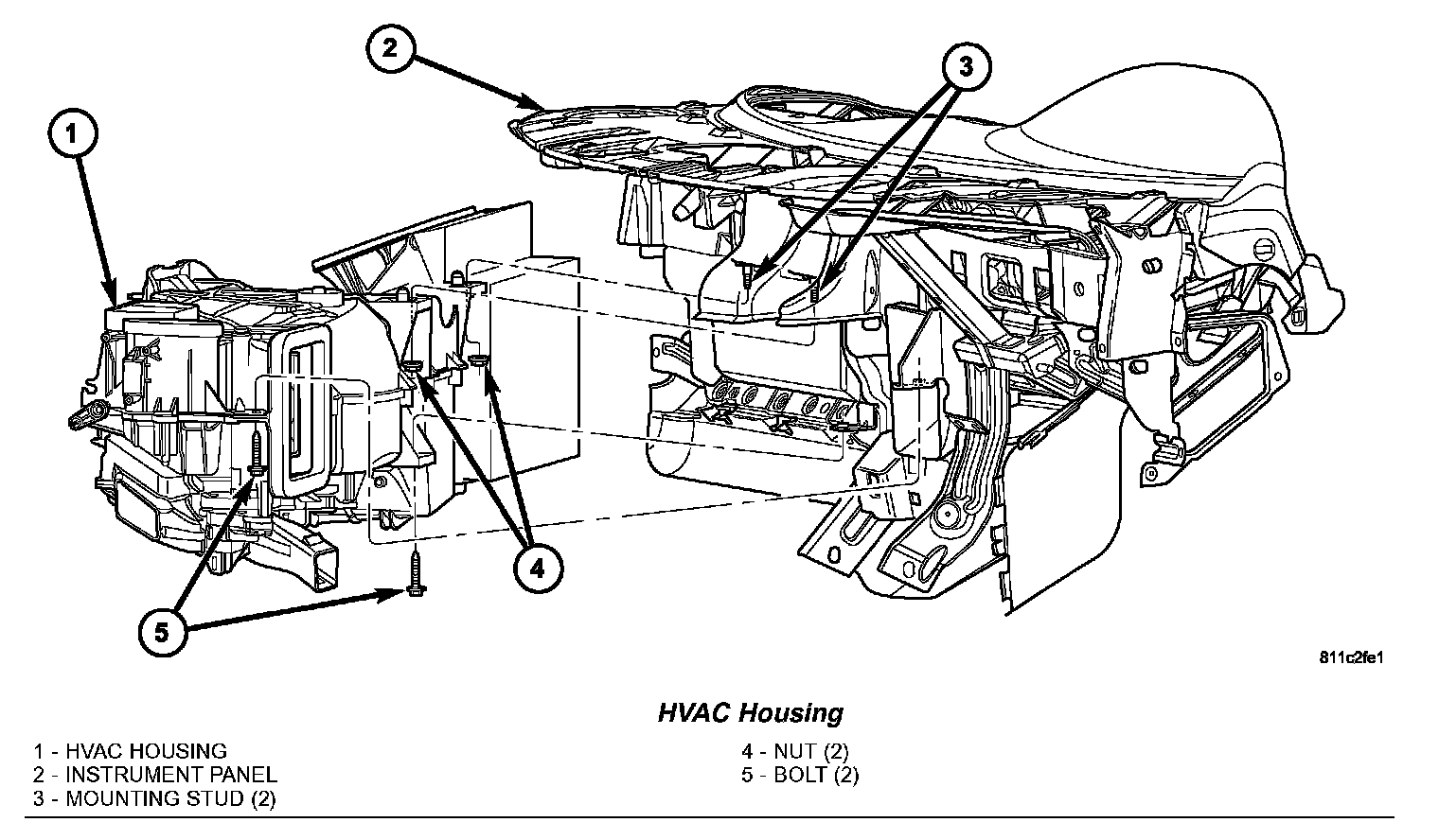 NOTE: The instrument panel and HVAC housing are removed from the vehicle together as an assembly.