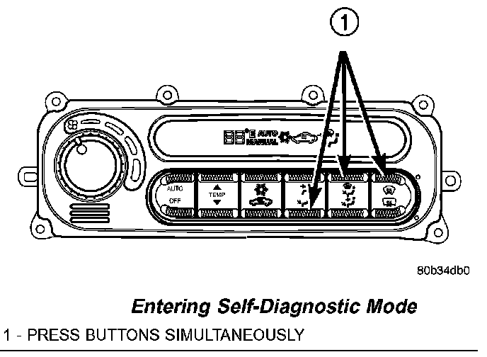 NOTE: It is important that no other control knob or button is pushed until all DTC's are read. Pushing any control button except Panel Mode or turning the blower fan control knob will end the diagnostic test without showing the rest of the DTC's. There also may be other DTC's stored in the BCM not related to the climate control system. These DTC's can only be found using the DRBIII (R) scan tool.