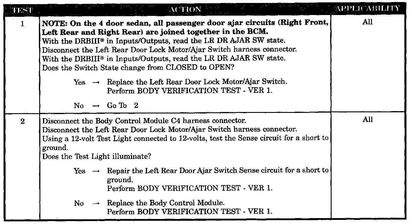 LEFT REAR DOOR AJAR CIRCUIT SHORTED TO GROUND