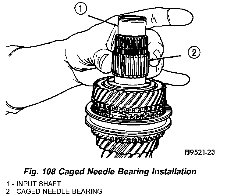 10. Install 5th gear caged needle bearing (Fig. 108).