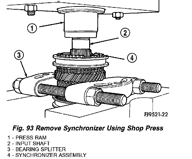 2. Remove synchronizer and gear using shop press (Fig. 93).
