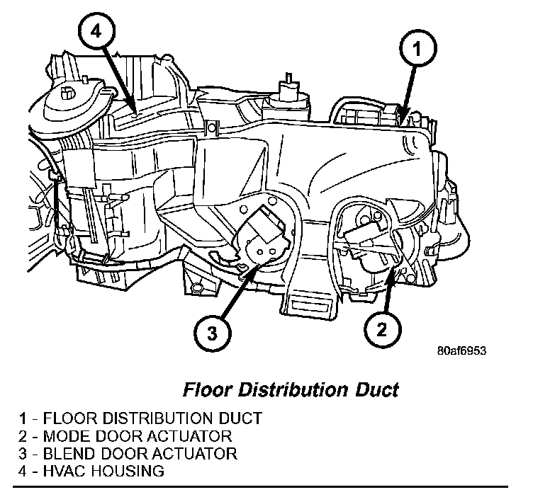 3. Remove the floor distribution duct from the HVAC housing.