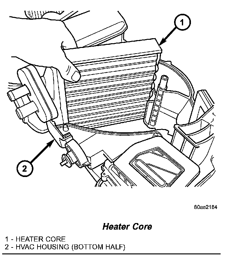 DISASSEMBLYNOTE: The HVAC housing must be removed from the vehicle and disassembled for service of the A/C evaporator, heater core and the mode-air and blend air doors.
