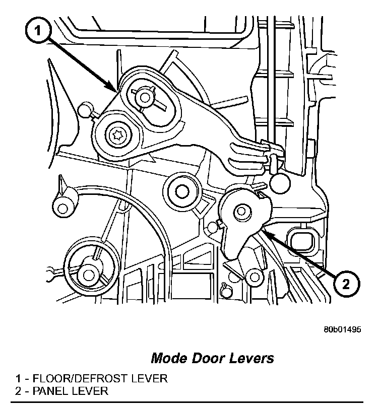 1. Install the two blend-air doors and levers into the HVAC housing.