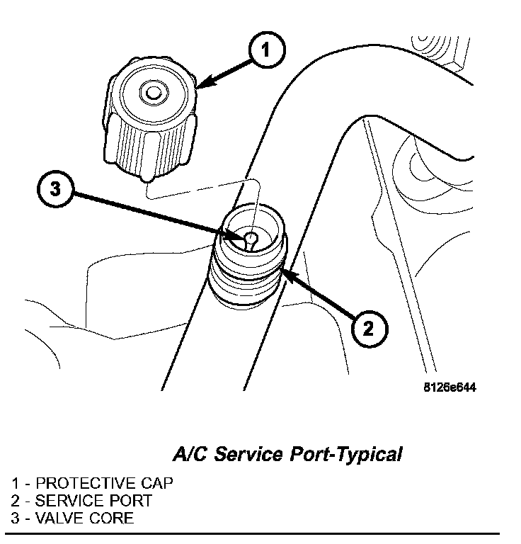 NOTE: The protective cap helps aid in service port sealing and helps protects the refrigerant system from contamination. Remember to always reinstall the protective cap onto the service port when refrigerant system service is complete.