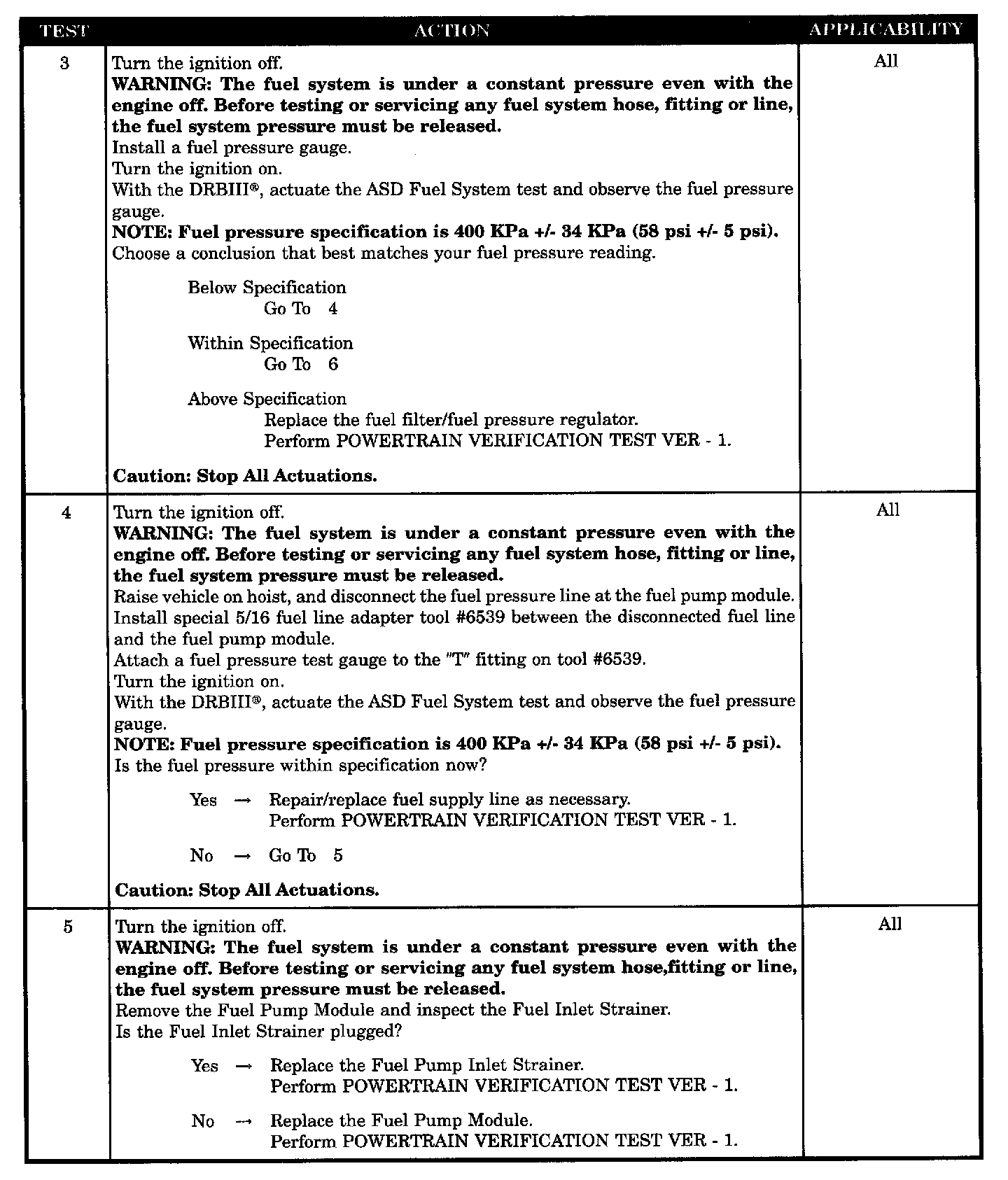 - Fuel pressure out of specs