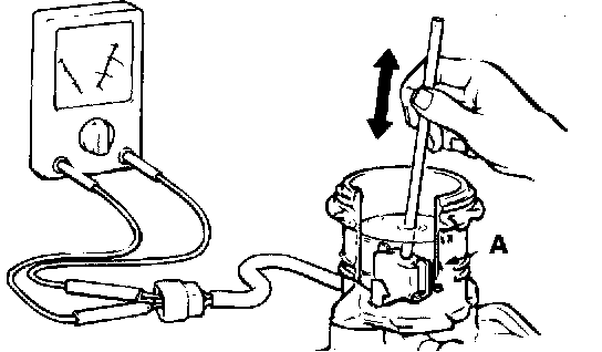 BRAKE FLUID LEVEL SENSOR CHECKThe brake fluid level sensor is in good condition if there is no continuity when the float surface is above "A" and if there is continuity when the float surface is below "A."