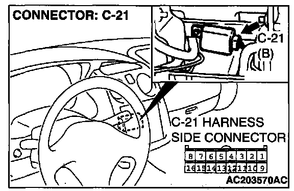 STEP 5. Check auto-cruise control-ECU connector C-21 for loose, corroded or damaged terminals, or terminals pushed back in the connector.