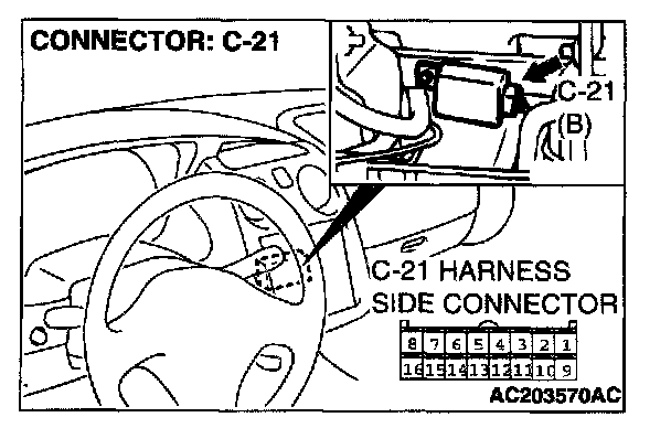 STEP 1. Measure the signal voltage at auto-cruise control- ECU connector C-21 by backprobing.