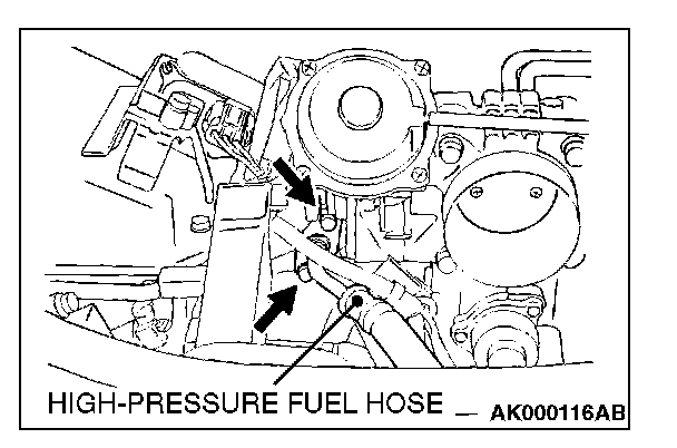 2. Disconnect the fuel high-pressure hose at the fuel rail side.