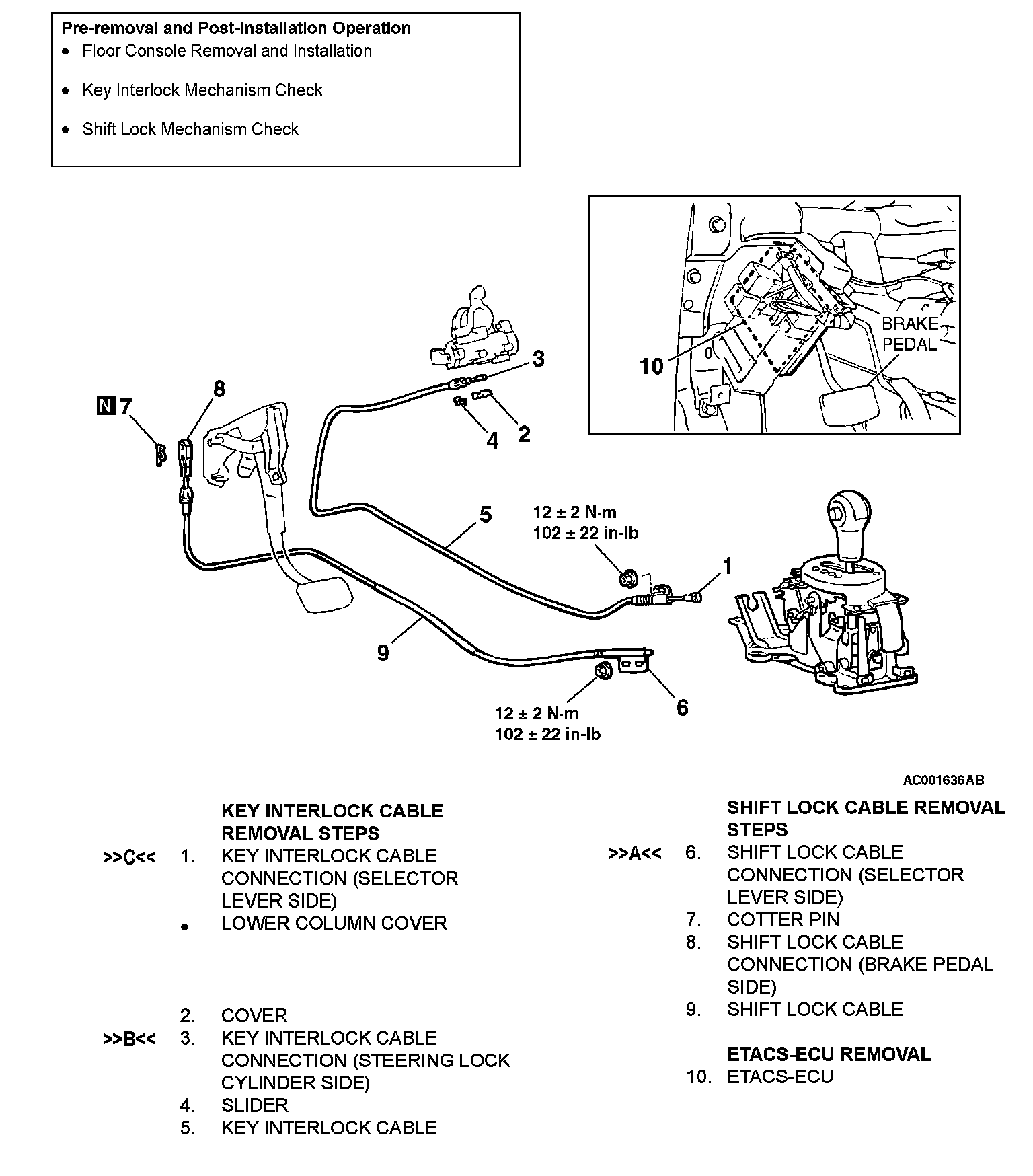 A/T KEY INTERLOCK AND SHIFT LOCK MECHANISMSREMOVAL AND INSTALLATION